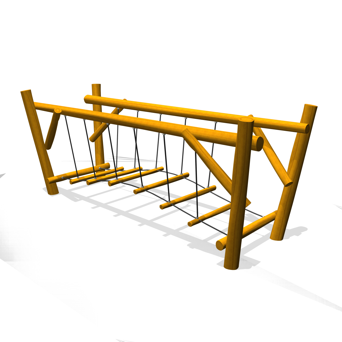 Made of irregularly shaped Acacia Robinia FSC certified wood. This European hardwood had a sustainability of class I according to EN 350 and is free of sapwood. The timber units are finished with stainless steel components 340 / K320-ground quality. Matching slides are stainless steel 304 quality polished stainless steel and all fastenings are A2 quality. The rope constructions are made of vandal resistant 16 mm Hercules rope in the colour black.